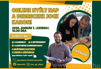 Online nyílt napra várja a Debreceni Egyetem Állam- és Jogtudományi Kara a jogi pályára készülőket. A rendezvényen egyebek mellett arról hallhatnak majd, hogy a jogi végzettség számos területen kínál elhelyezkedési lehetőséget és a mindennapokban is hasznosítható ismeretekkel, készségekkel vértez fel.